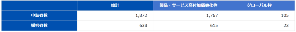 採択件数:638件/1,872件 採択率:34.1%という結果になりました。