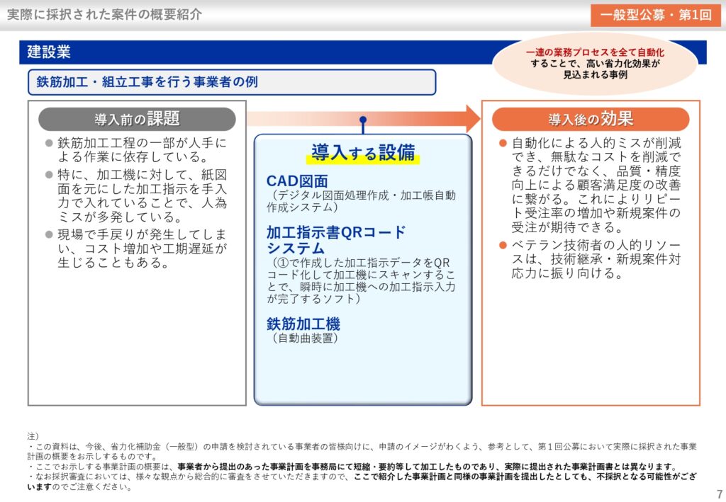 第1回の中小企業省力化投資補助金一般型では下記の採択事例がありました。