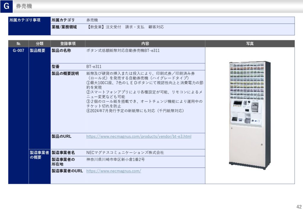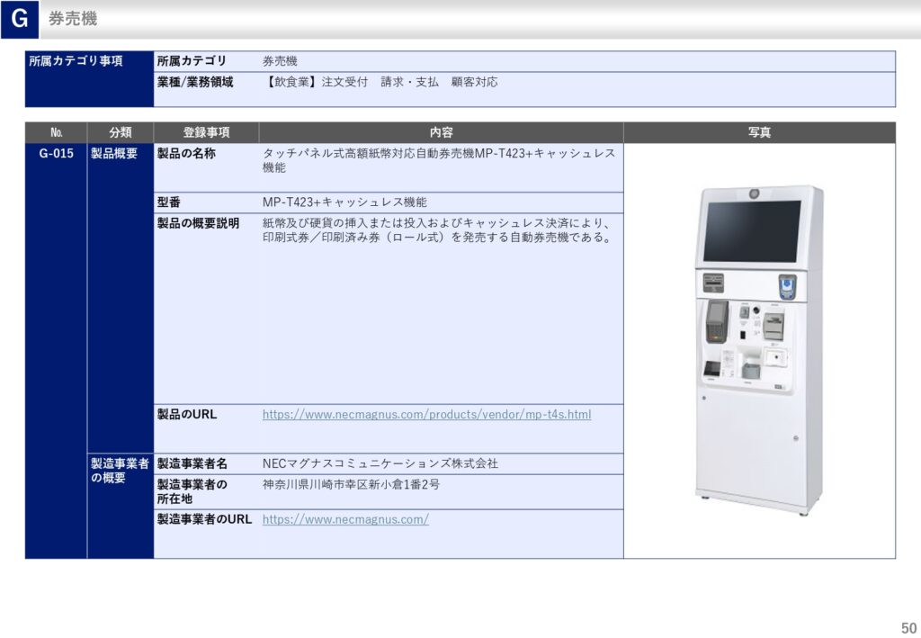 中小企業省力化投資補助金で券売機を導入する場合、製品カタログの中から製品を選択する必要があります。